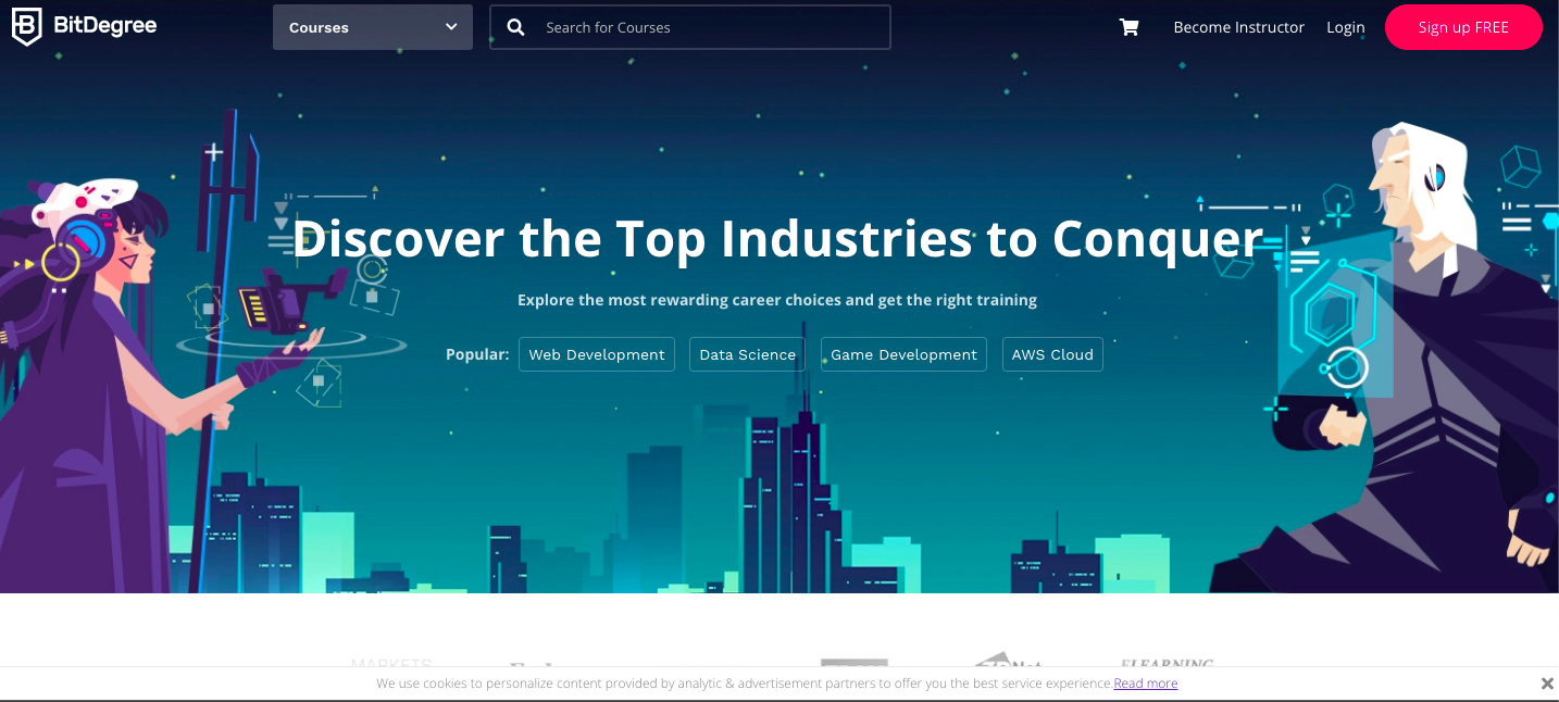 BitDegree adalah tempat yang ideal untuk belajar coding secara gratis. Platform pendidikan online ini menawarkan kursus tentang banyak bahasa pemrograman seperti HTML, JavaScript, PHP, CSS, dan mata pelajaran seperti pengembangan game dan ilmu data. Beberapa kelas menawarkan sertifikasi yang berguna dalam resume pekerjaan.