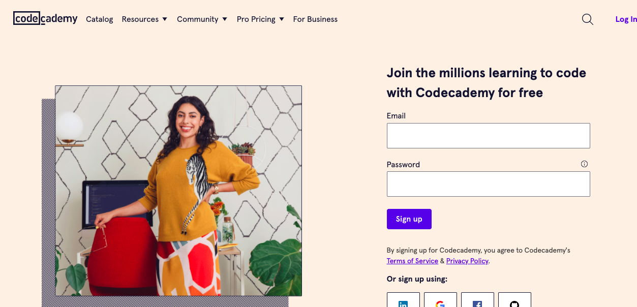 Sama seperti BitDegree, Codecademy juga menyediakan kursus gratis dan berbayar pada 14 bahasa pemrograman yang berbeda seperti HTML, CSS, GO, Swift, dan banyak lainnya. Codecademy memiliki kuis penyortiran di awal yang membantu siswa menentukan pekerjaan pemrograman mana yang paling cocok untuk mereka dan kursus mana yang akan mereka ikuti. Ada kelas ramah pemula dan menengah – keduanya bekerja secara terorganisir.