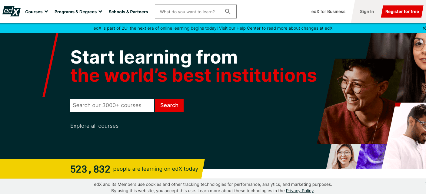 - Banyak pilihan kursus tingkat universitas yang ditawarkan bekerja sama dengan universitas terbaik di dunia – MIT, Harvard, Microsoft, dll.