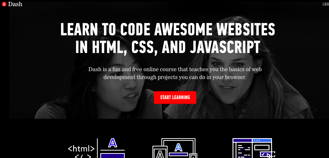 Dash adalah platform online yang dirancang oleh General Assembly yang merupakan kamp pelatihan pengkodean dan platform pendidikan digital. Pengguna dapat belajar coding secara gratis di situs ini melalui berbagai proyek online. Setiap tugas memberi pengguna wawasan tentang dasar-dasar bahasa pemrograman seperti HTML, JavaScript, dan CSS.